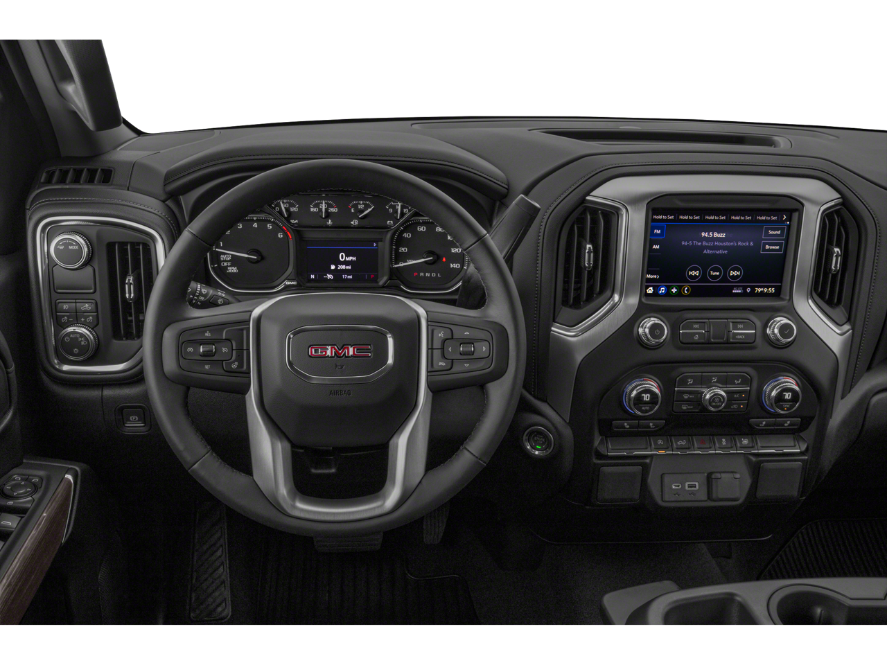 Elevation Convenience Package (10-Way Power Driver Seat Adjuster w/Lumbar, Dual-Zone Automatic Climate Control, Heated Driver & Front Outboard Passenger Seating, Heated Steering Wheel, Manual Tilt-Wheel & Telescoping Steering Column, and Rear Wheelhouse Liners), Elevation Convenience Package w/Bucket Seats (2 USB Ports, Floor-Mounted Center Console, and Front Bucket Seats), Elevation Value Package (Heavy-Duty Rear Locking Differential), Preferred Equipment Group 3SB (12-Volt Rear Auxiliary Power Outlet, 4G LTE Wi-Fi Hotspot Capable, Body-Color Surround Grille, Color-Keyed Carpeting Floor Covering, Compass, Deep-Tinted Glass, Electric Rear-Window Defogger, Electrical Lock Control Steering Column, Front Frame-Mounted Black Recovery Hooks, Front Rubberized-Vinyl Floor Mats, GMC Connected Access Capable, Keyless Open & Start, LED Cargo Area Lighting, Manual Tilt Wheel Steering Column, OnStar & GMC Connected Services Capable, Power Door Locks, Power Front Windows w/Driver Express Up/Down, Power Front Windows w/Passenger Express Down, Power Rear Windows w/Express Down, Rear Dual USB Charging-Only Ports, Rear Rubberized-Vinyl Floor Mats, Remote Vehicle Starter System, Single-Zone Manual/Semi-Automatic Air Conditioning, Steering Wheel Audio Controls, and Theft Deterrent System (Unauthorized Entry)), Trailering Package (Hitch Guidance), 10-Speed Automatic, 4WD, Black Cloth, 170 Amp Alternator, 220 Amp Alternator, 4-Way Manual Driver Seat Adjuster, 4-Way Manual Passenger Seat Adjuster, 4-Wheel Disc Brakes, 6 Speakers, 6-Speaker Audio System Feature, ABS brakes, Air Conditioning, Alloy wheels, AM/FM radio, Apple CarPlay/Android Auto, Auxiliary External Transmission Oil Cooler, Brake assist, Bumpers: body-color, Cloth Seat Trim, Delay-off headlights, Driver door bin, Driver vanity mirror, Dual front impact airbags, Dual front side impact airbags, Electronic Stability Control, Exterior Parking Camera Rear, External Engine Oil Cooling, Front 40/20/40 Split-Bench Seat, Front anti-roll bar, Front Center Armrest w/Storage, Front fog lights, Front License Plate Kit, Front reading lights, Front wheel independent suspension, Fully automatic headlights, Heated door mirrors, Heavy Duty Suspension, Illuminated entry, Integrated Trailer Brake Controller, Low tire pressure warning, Occupant sensing airbag, Outside temperature display, Overhead airbag, Overhead console, Panic alarm, Passenger door bin, Passenger vanity mirror, Power door mirrors, Power steering, Power windows, Premium audio system: GMC Infotainment System, Radio data system, Radio: GMC Infotainment Audio System, Rear reading lights, Rear step bumper, Rear window defroster, Remote keyless entry, Security system, Speed control, Speed-sensing steering, Split folding rear seat, Spray-On Pickup Bed Liner w/GMC Logo, Steering wheel mounted audio controls, Tachometer, Tilt steering wheel, Traction control, Trip computer, Variably intermittent wipers, Voltmeter, and Wheels: 20 x 9 Black Gloss Painted Aluminum.