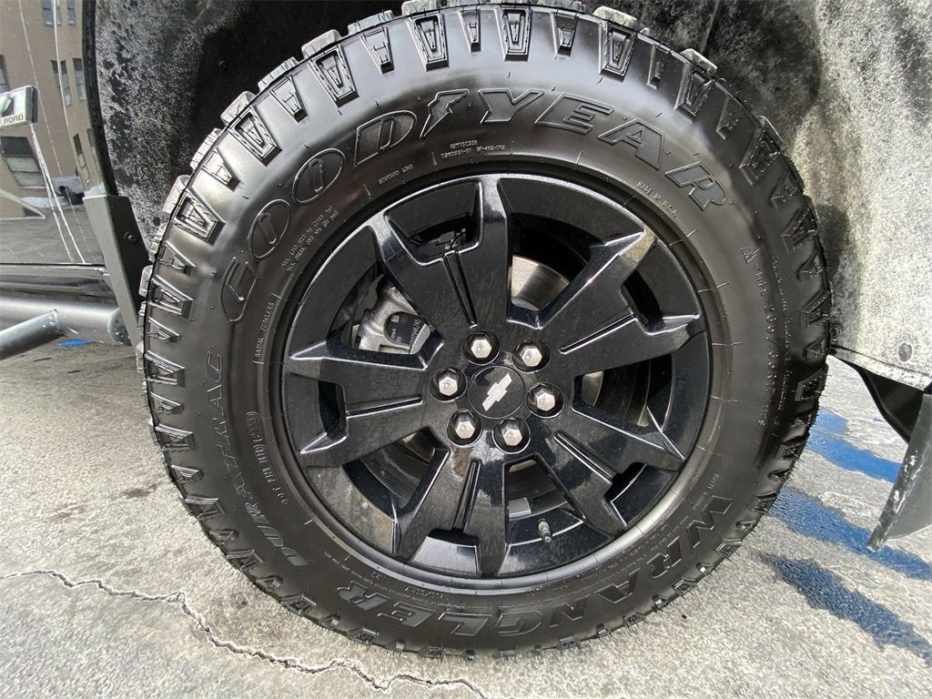 Heavy-Duty Trailering Package, Preferred Equipment Group 4Z7 (Hitch Guidance, Tow/Haul Mode, and UltraSonic Rear Park Assist), Safety Package (Forward Collision Alert and Lane Departure Warning System), Z71 Midnight Edition (1st & 2nd Row All-Weather Floor Liner (LPO), Black Spray-On Bedliner w/Chevrolet Logo, and Wheels: 17 x 8 Gloss Black Aluminum), 4WD, 2 USB Data Ports w/SD Card Reader, 3.42 Rear Axle Ratio, 3 Round Black Off-Road Step Bars (LPO), 4-Wheel Disc Brakes, 6 Speakers, 6-Speaker Audio System Feature, ABS brakes, Air Conditioning, Alloy wheels, AM/FM radio: SiriusXM, Apple CarPlay/Android Auto, Auto-dimming Rear-View mirror, Automatic temperature control, Bose Premium 7-Speaker Audio System Feature, Bumpers: body-color, Cloth/Leatherette Seat Trim, Compass, Delay-off headlights, Driver 6-Way Power Seat Adjuster, Driver door bin, Driver vanity mirror, Dual front impact airbags, Dual front side impact airbags, Electronic Stability Control, Exterior Parking Camera Rear, Front & Rear Splash Guards, Front 1 Leveling Kit (LPO), Front anti-roll bar, Front Bucket Seats, Front Center Armrest, Front fog lights, Front reading lights, Front wheel independent suspension, Fully automatic headlights, HD Radio, Heated door mirrors, Heated Driver & Front Passenger Seats, Heated front seats, Heated steering wheel, Illuminated entry, Integrated Trailer Brake Controller, Low tire pressure warning, Occupant sensing airbag, Outside temperature display, Overhead airbag, Overhead console, Panic alarm, Passenger door bin, Passenger vanity mirror, Power door mirrors, Power Driver Lumbar Control Seat Adjuster, Power driver seat, Power steering, Power windows, Premium audio system: Chevrolet Infotainment 3 Plus, Radio data system, Radio: Chevrolet Infotainment 3 Plus System, Radio: Chevrolet Infotainment 3 Plus System w/Navi, Rear reading lights, Rear seat center armrest, Rear step bumper, Rear window defroster, Remote keyless entry, Security system, SiriusXM Radio, Speed control, Speed-sensing steering, Steering wheel mounted audio controls, Tachometer, Telescoping steering wheel, Tilt steering wheel, Traction control, Trip computer, Variably intermittent wipers, and Wheels: 17 x 8 Bright Machined Aluminum.